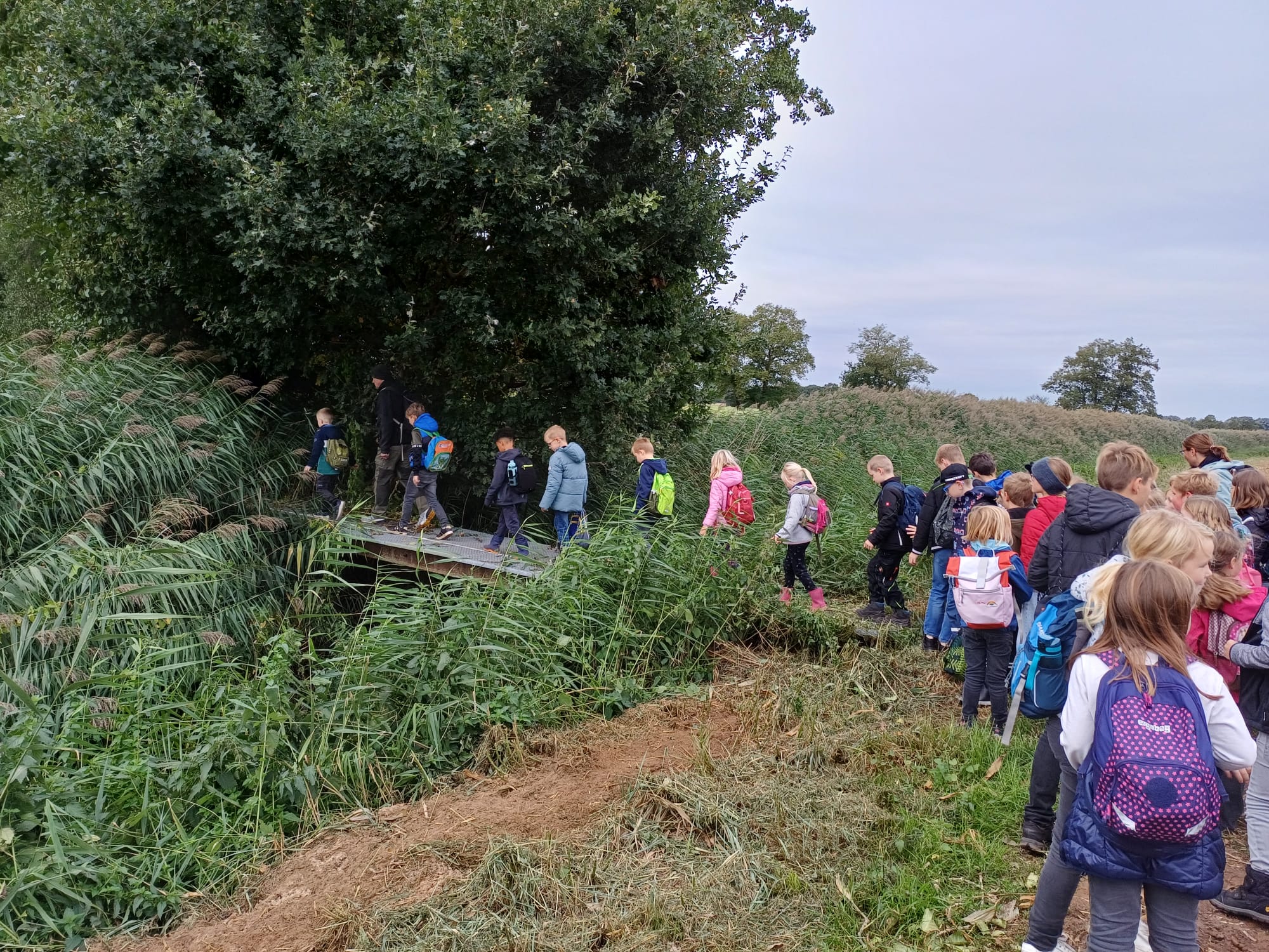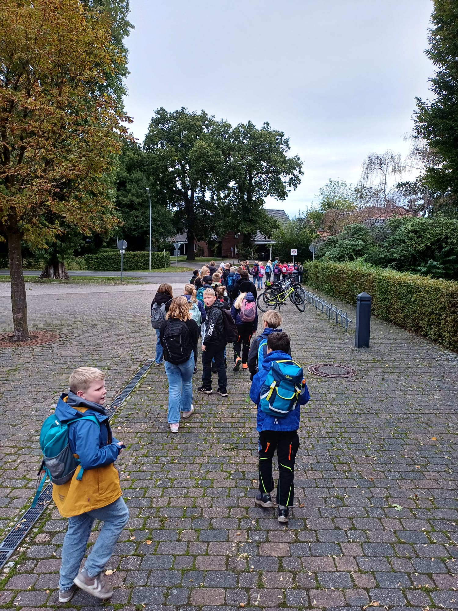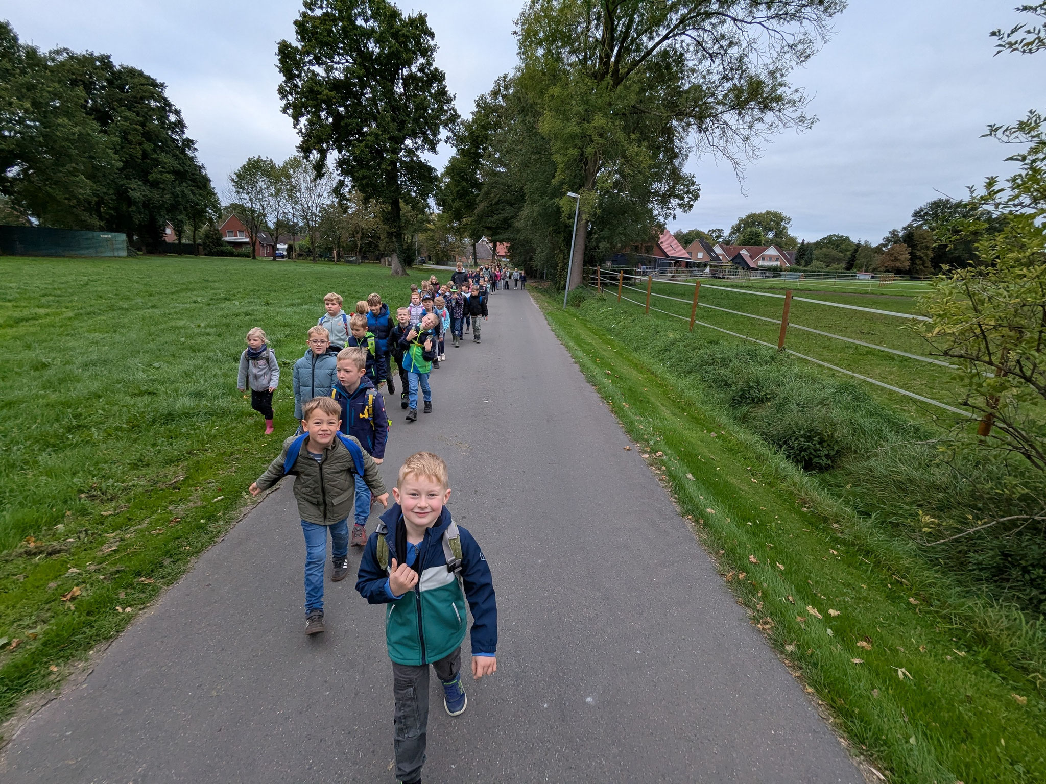 Auch in diesem Jahr war der gemeinsame Ausflug zum Mais-Labyrinth ein voller Erfolg. Tapfer und ohne zu murren wanderten die Kinder der Grundschule Ringe nach Hoogstede zum Bauernhof der Familie Scholten-Meilink. Dort angekommen, wurde erstmal gemeinsam gefrühstückt. Danach machten sich die Schülerinnen und Schüler auf die Suche nach den im Maisfeld versteckten Stempel-Stationen. Bevor wir den Heimweg antreten mussten, blieb noch genügend Zeit zum Spielen, Klettern und Trecker-Surfen. Ein toller Tag in der Natur mit viel Bewegung an der frischen Luft!
